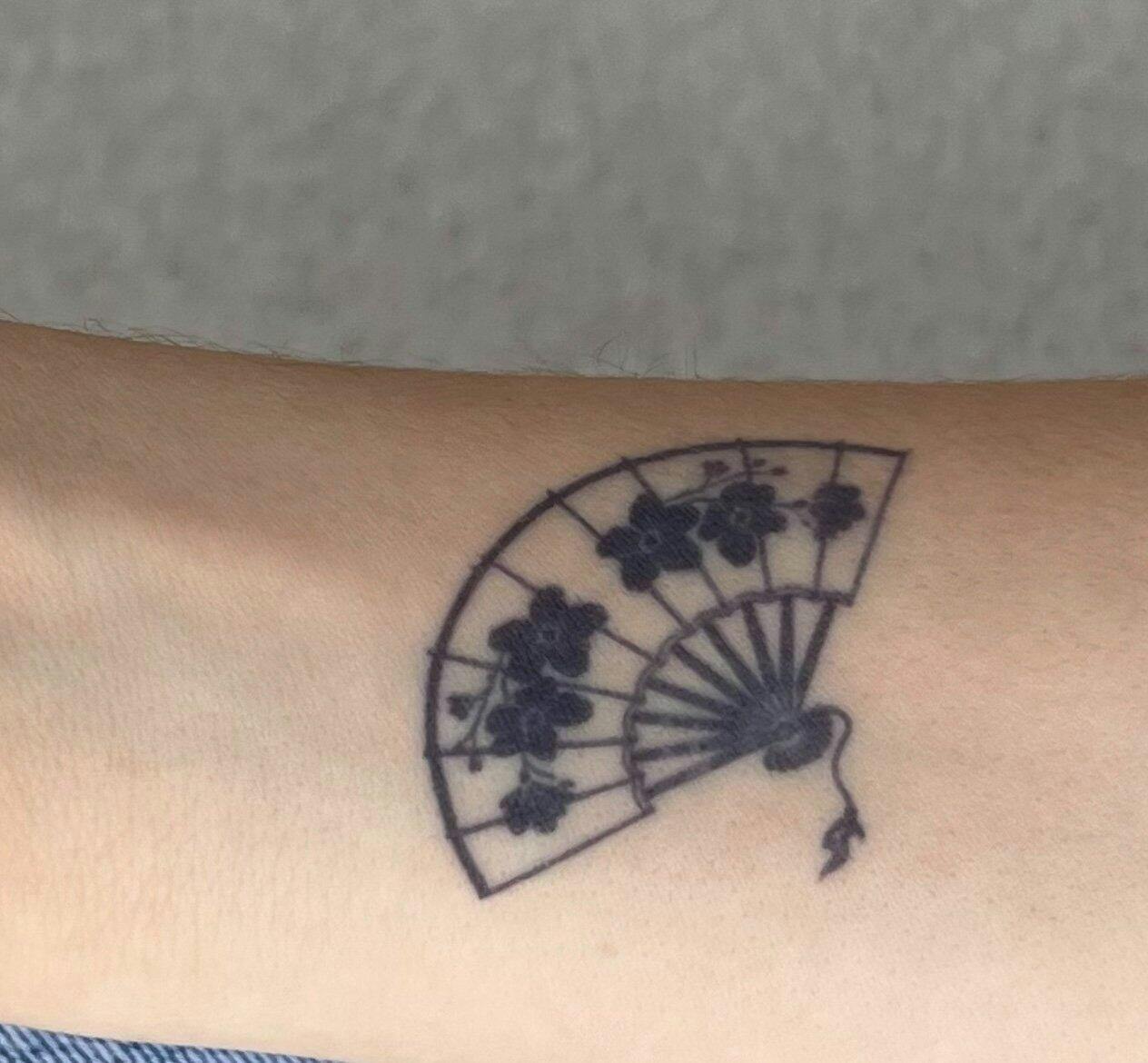 • Tatouage éventail avec fleur de cerisier